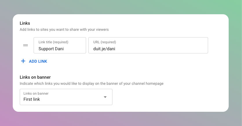 Toon de link naar je Duitje-profiel op de banner van je kanaal